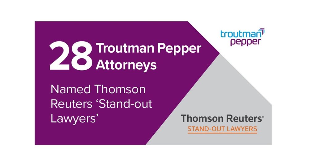 NEW YORK – More than two dozen Troutman Pepper attorneys have been recognized by Thomson Reuters as “Stand-out Lawyers” and will be included in the organization’s database of client-nominated lawyers in private practice. Each year, Thomson Reuters surveys more than 2,000 senior legal buyers around the world in building its list of Stand-out Lawyers. Those […]